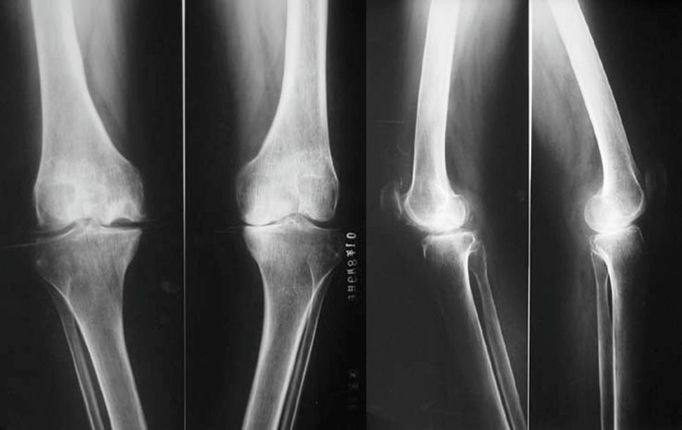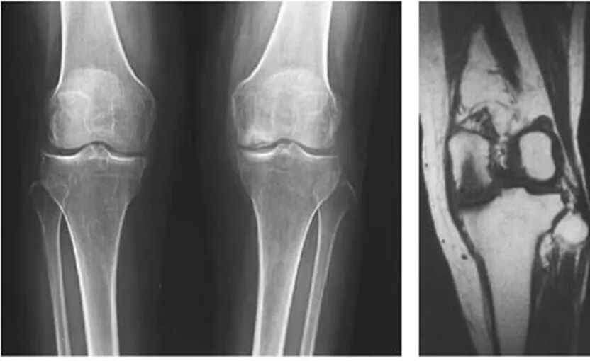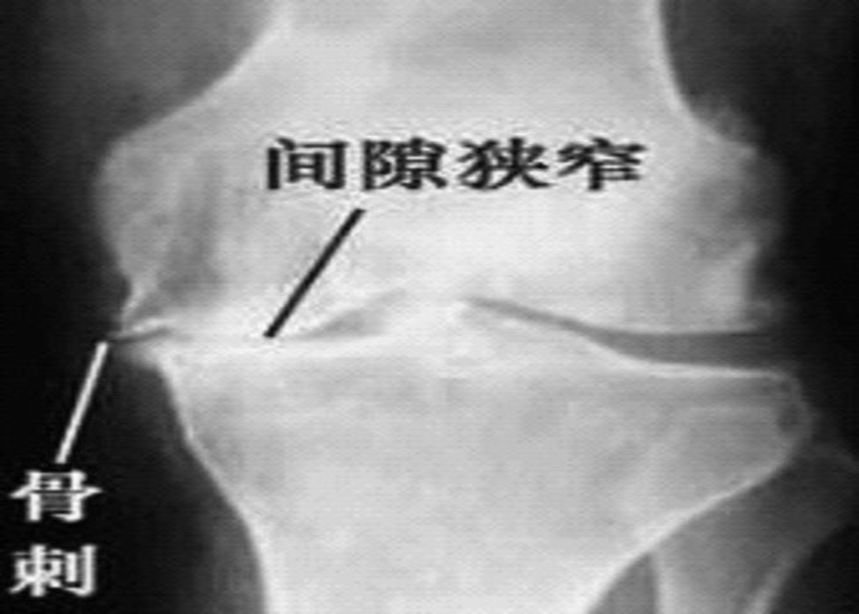 2、X线片(站立或负重位)示关节间隙变窄、软骨下骨硬化、和(或)囊性变、关节缘骨赘形成。