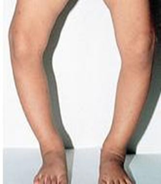 8、膝关节畸形改变,以膝关节内翻畸形最为常见。